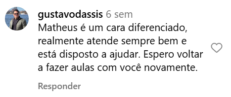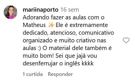 Aulas e suporte 100% centralizados comigo (Matheus Calione). Nada de aulas com professores diferentes. Foco total no seu progresso.